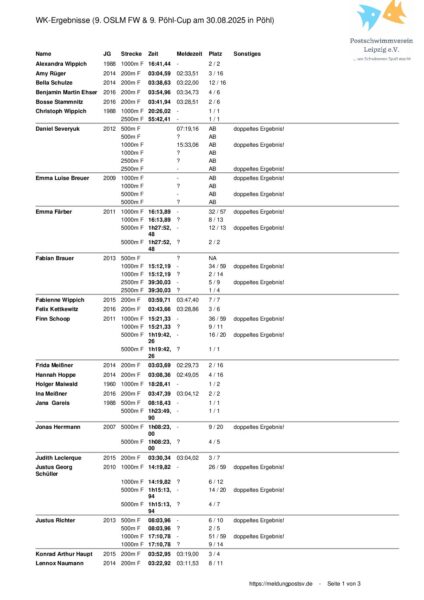 Um unsere Webseite für Sie optimal zu gestalten, verwenden wir Cookies. Durch die Nutzung der Postschwimmverein Leipzig e.V. Website erklären Sie sich damit einverstanden.